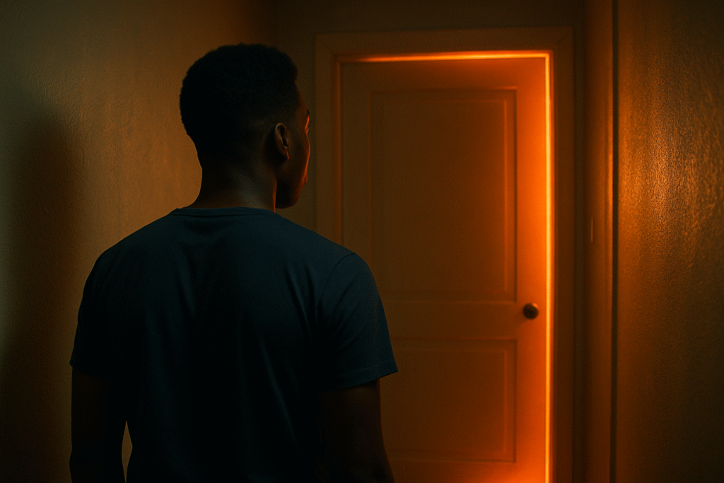 • The glow spilling from under the bedroom door