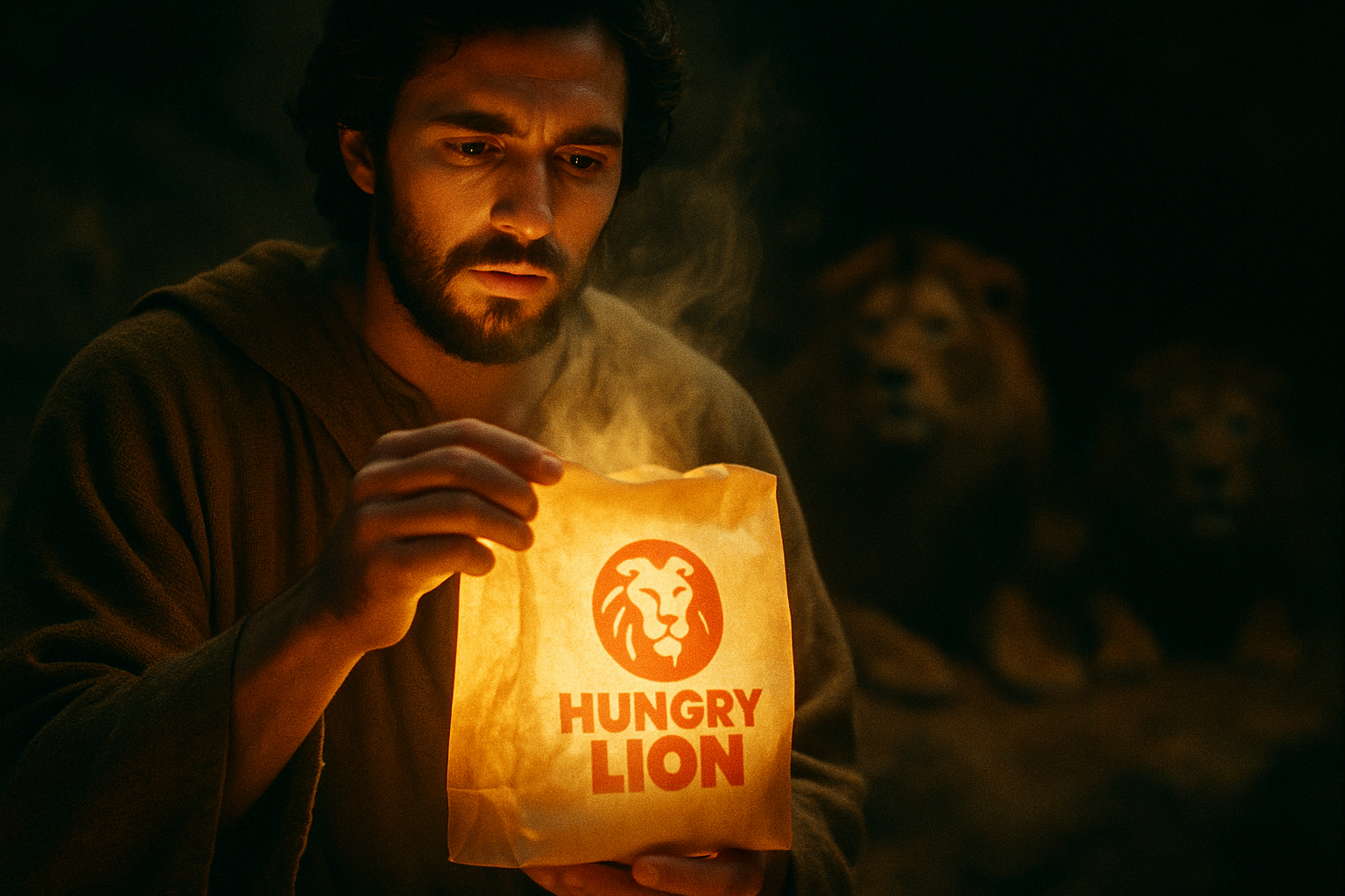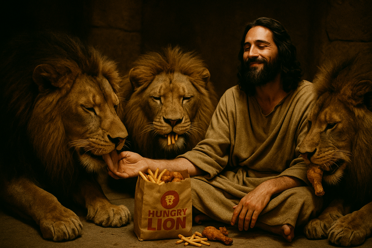 I asked myself: what if Daniel wasn’t saved from the lions by a miracle, but by a two-piece combo meal?